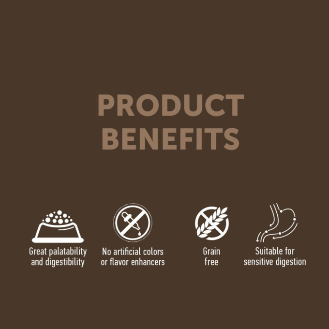 Free of grain-based ingredients that can cause allergic reactions. Suitable for pets with sensitive digestive systems because this type of feed does not burden the digestive tract.