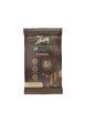 Composition: white fish min. 24 % (dried and finely ground), potato flakes, pregelatinised potato starch, hydrolysed feather meal, sorbitol, glycerine, glucose syrup, pea fibre (4 %), salmon oil (3 %), dynamic micronized clinoptilolite (1 %), chitosamine (from aquatic animals) (1 %), fructooligosaccharides (FOS), green tea extract (0,5 %), glucosamine (500 mg/kg), chondroitin sulphate (250 mg/kg), dried algae Schizochytrium sp. (0,16 %).