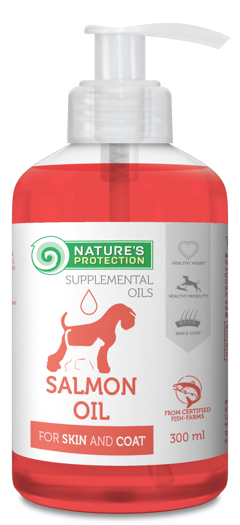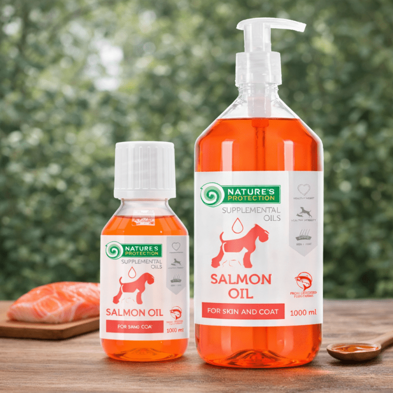 Nature’s Protection 100% laxolja är ett högkvalitativt kompletteringsfoder som är speciellt framtaget för att stödja den allmänna hälsan och välbefinnandet hos vuxna hundar och katter. Det är rikt på omega-fettsyror, specifikt EPA och DHA, vilka är viktiga för att säkerställa en god ämnesomsättning hos husdjur. Laxolja är mycket värdefull när det gäller att upprätthålla en frisk hud och päls och kan bidra till att förebygga hudallergier hos husdjur. Detta kompletteringsfoder är tillverkat av 100 % laxolja och innehåller inga konstgjorda konserveringsmedel, färgämnen eller smakämnen. Regelbunden konsumtion av detta kompletteringsfoder kan ge många hälsofördelar för dina husdjur, inklusive ett friskt hjärta och optimal rörlighet. Det är berikat med Omega-3- och Omega-6-fettsyror som kan bidra till att upprätthålla hälsosamma leder och minska inflammation. Nyttiga fetter stödjer också hjärnans utveckling och kognitiva funktion. Dessutom kan de höga nivåerna av omega-fettsyror bidra till hälsosamma hud- och pälsförhållanden hos husdjur, vilket gör pälsen blankare och mjukare. Nature’s Protection 100% laxolja kompletteringsfoder kan hjälpa till att hålla dina husdjur friska, glada och fulla av energi.